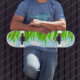 Denna skateboard har en fin illustration av gräs och en blå himmel. Det är perfekt för alla som älskar att åka skate när vädret är precis rätt.