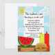 Vädret är bra och det är dags för utomhusgrillning! Denna färgglada inbjudan har en vattenmelon, korv, hamburgare, ketchup och senap under en strålande sol. Ett bra tema för födelsedagar, familjesammanträffanden och sammankomster. Original vektor konst av Night Owl's Menagerie, 2010.