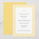 Lätt att anpassa formell och elegant text ser chic ut, inramad av ett kantmönster i smörgul gul gingham-kontroll med en enkel traditionell tre-bokstavsmonogram högst upp på denna klassiska babyfestinbjudan.