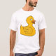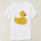 Livfull illustration av gummiand med djärva gula nyanser och rena konturer, perfekt för barnkläder och lekfulla tote-tryck. Ljus, vänlig stämning för badtid eller sommarteman.