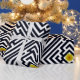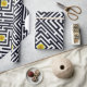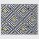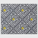 Geometrisk design med ett mönster av svart mazes som leasar till en gul blomma av maskrosen.