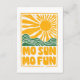 Upplev den strålande energin från Sunny Fun Fiesta, ett levande konstverk med en lysande gul sol och dynamiska strålar, placerad ovanför gröna och vita vågiga linjer som påminner om kullar eller vågor. Med fet, gul typografi som utropar MO SUN MO FUN, fångar denna design essensen av glädje och positivitet på soliga dagar. Perfekt för älskare av lekfull och modern konst, tillför detta konstverk en stänk av lycka och charm till alla utrymmen, accessoarer eller klädstil.