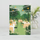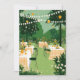 En charmig utomhusavslutningsfest i en frodig trädgård fylld med tusenskönor, grönska och festliga dekorationer. Långa bord med gula rutor dukar, varma hängande lampor och glada blomsterarrangemang skapar en glad atmosfär perfekt för att hedra en examen. Denna ljusa och välkomnande scen fångar spänningen av prestation, vänskap och sommarfirande omgiven av natur och mjuk gyllene ljus.