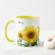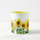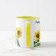 Soliga gula solrosor och kalligrafi-mugg