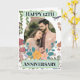 Fira 12 underbara år tillsammans med detta personliga vikta jubileumskort som är designat för att hedra varaktig kärlek. Framsidan har en ljusgrön blomsterbakgrund, ett anpassningsbart fotområde för paret och redigerbar text "Grattis på 12-årsdagen" som är idealisk för att fånga kärleksfulla minnen. Inuti markerar ett hjärtligt budskap den gemensamma resan. På baksidan finns ömtåliga ljusbruna och gröna blad, charmerande svampar och 2 sammanflätade ringar i mitten som ger en varm, jordnära och romantisk avslutande touch. Perfekt för par som uppskattar naturen, enkelhet och mening i sina milstolpar.
