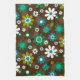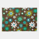 En modern retro diskgardin med tusenskönor i brunt, blått och vitt mönster