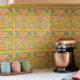 Med en ljus solig blommig design är dessa plattor ett unikt tillskott till kök eller badrum bakgrundsplattor.
