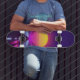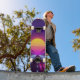 Om du är besatt av det neonfärgade estetiken från 1980-talet, skapades denna Synthwave skateboard för just dig. Oavsett om du besöker den lokala skateparken eller letar efter en djärv retro-futuristisk väggkonst, sticker de djupa purpurfärgerna och elektriska rosa färgerna ut i detta stycke. Det är den perfekta blandningen av nostalgiska arkadvibbar och modern retrokonst.