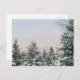 Solnedgång för Snö täckt av Gräs Träd Måne Vykort