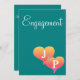 Monogrammad romantic Teal Grönt Förlovning Hearts party design. Romantiska förlovningar bjuder in kort med två hjärtan på framsidan i skuggor av en solnedgång i orange med gyllene gulter till rosa på en grönt med solid teal-bakgrund med vit text. Anpassa kortets framsida med parets monogrammade initialer inuti hjärtan. Anpassa kortets baksida med dina uppgifter (skriv i ställe i min exempeltext). Ursprunglig teckningsdesign av TamiraZDesign.