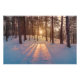 Solnedgång i snöig vinter tallskog fototryck
