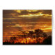 Solnedgång med gyllene raketer genom Träd Hälsningskort