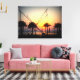 Solnedgång med handflatan träd och trampolin canvastryck