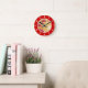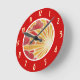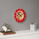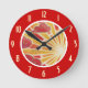 Guld och orange sol sätter upp och vinden blåser rött och rosa moln över himlar. Väggklocka med guld, orange, rött, rosa och vitt anpassade som du kan anpassa med din egen text, bilder och dina idéer. Andra tillgängliga alternativ för stil. Bilden skapades från en ursprunglig färgpenna och metallisk teckning i bläck av Jess Perry.