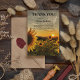 Personligens begravning tackar dig för att du skickar ut ett kort till vänner och familj som har visat dig kärlek och vänlighet under din sorgetid. Med en fält av vackra solrosor av gult, en solnedgång och ett sött tackkort.