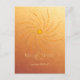 Denna solnedgångs-ombré- välkomstkort för bröllop visas med en diagonal övergång från guld till mörkorange på framsidan och baksidan av kortet, med en enkel guld/orange prickig mandala med vågiga solstrålar på framsidan av kortet - av katz_d_zynes | För anpassningshjälp klickar du på länken "Kontakta denna formgivare" nedan | Del av katzdzynes' Bröllopsinbjudningsserie för solnedgång >> https://www.zazzle.com/collections/119852708973624529