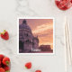 Målning av solnedgång med orange himlar i Venedig. Basilica di Santa Maria della Salute i Venedig, Italien