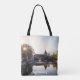Solnedgång över gammal medeltida bro i Nürnberg Tygkasse