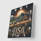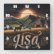 Solnedgång över gården med häst och Barns i bergen Fyrkantig Klocka