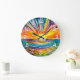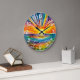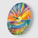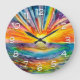 Solreflekterande klocka. Söt vattenfärgssolnedgång stil över det färgstarka havshaféet mugg. Blått, gult, orange himlar och vatten. "generativeinnehåll