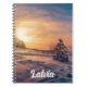 Panoramisk syn på solnedgången över vinterlandskapet med täckt yta i snö gräs och i träd mot dramatiskt kvällsljus. Snowy Baltic Sea kusten.