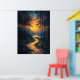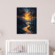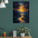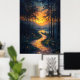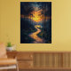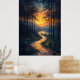 Fördjupa dig i naturens lugn med detta fantastiska impressionistiska konsttryck. Med en slingrande skogsväg upplyst av solnedgångens gyllene nyanser och reflektioner på vattnet. Perfekt för att tillföra värme och stillhet till din väggdekor.