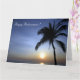 Handflatan träd på en strand vid solnedgången. Anpassa kortet för valfri tillfälle.
