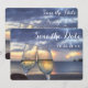 Solnedgång på strandbröllop Save the Date-kort (runda) med utbyttbar text och foto - du kan lägga till dina foton och ändra text