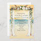 Blommig Vinranke Girlang Solnedgång Strand Driftwood Trädgård Baldakin Bröllopsinbjudan