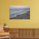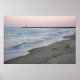 Rosa sunset himlar, blue vatten, vågar och sand vid Scusset Beach vid Cape Cod Bay