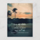 Solnedgång vid strand med palmer Spara datum Meddelande Vykort
