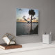 Den lugna scenen med ett sol som går över lugnens hav parat med mjukt uppsvällande handflatan träd skapar en inbjudande atmosfär, perfekt för att förvandla alla utrymmen till en fredlig reträtt där man kan släppa loss och slappna av.