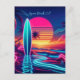 Skicka en stänk av kustcharm med vårt solnedgångskort Neon Ljus vykort! Med ett strålande, blå, nyon-surfboard mot en mesmarsande solnedgång kan du med det här anpassadet, oavsett var de finns, magin på din favoritstrandplats med nära och kära.