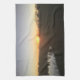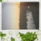 Denna kökshandduk har en bild av en solnedgång på den.