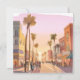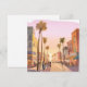 Solnedgångs kuststad i Kalifornien | Palmträd kust vattenfärg kort