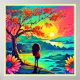 En ung flicka står på en kulle och blickar ut över en fantastisk solnedgång vid en slingrande flod. Levande färger och frodig grönska skapar en fängslande scen av frid och undran (Denna design gjord med AI). Beställ idag och omfamna glädjen av shopping!