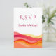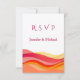 Samordna din brölloppskorrespondens med detta RSVP-kort i solnedgångsfärger, designat för att komplettera din djärva bröllopsinbjudan i samma stil. Med samma moderna abstrakta solnedgångsvågor skapar detta RSVP-kort en sammanhängande och förfinad look för hela din brölloppssvit, samtidigt som det följer 2026 års trendiga solnedgångspalett.