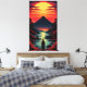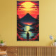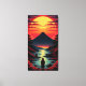 Solnedgångsflod med vulkan canvastryck