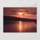 Vackert hälsningskort för solnedgången i Fars dag. lycklig Fars dag står på vykortets framsida. Underbart seren, lugn, avslappnande solnedgång på sjö. Anpassa kortets fram- och baksida med ditt eget meddelande.