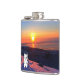 Solnedgångsnöbeasten granskar flaskan fickplunta