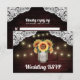 Solros Mason Burk Wood Snöre Bröllop OSA Cards - har en djup röd lada-bakgrund som trimmas med snöre och dekoreras med varm färgad av tinkle ljus. Utformningen har också en bukett med solblommor inuti en mason burk som du kan anpassa initialer till de alternativ du väljer. Baksidan har också samma land-bakgrund som framsidan.