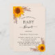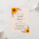 För en modern boho stil babydusch. En bakgrund i ro guld. Dekorerad med solblommor, pampasgräs. Anpassa och lägg till information om namn och party.