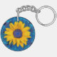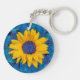 Gult solros på blå bakgrund. Impressionistisk målning.