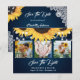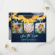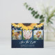 Bilden Rustic navy blue blommigt bröllop sparar datumkorten med solblommor och vit blommigt snöre på en marin övertoningsbakgrund. Anpassa det här kortet enkelt med information om bilder och bröllop. Matchande objekt är tillgängliga. Bakgrunden kan ändras till vilken färg som helst.