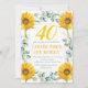 Sunblommor, elegant, eukalyptus, grönt, fyrtio, gula blommor, rustik, blommigt, vuxen, botaniskt, vattenfärgsinbjudningar från 40:e födelsedagspartiet. Hand målade själv solblommor med vattenfärg. Anpassa den med dina detaljer.