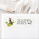 På den lämnat sidan av dessa returetiketter finns en vattenfärgsbild av en australisk terrier-hund bland spridda solblommor och eukalyptus löv. Diskret guld-konetti lägger till intresse till bakgrunden. Din anpassningsbar är i grönt och mörk grått på högerna.