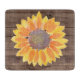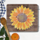 Denna rustiska avskärningspåva är dekorerad med en gult solros i vattenfärg på en lada med träbakgrund. Ursprunglig vattenfärg © Michele Davies.