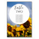 Den här utformningen har solblommor och en bakgrund i blå himmel. Den enkla vita cirkeln ramar med sin elegant-typografi placeras ovanpå fotot av rustik solros fält för att skapa en bedövande design. Gulten och blåtonerna i himlar och solblommor skapar en naturlig land-trädgård. Utformningen av bordsnumret i elegant bröllop med det moderna inslag. Det finns också möjlighet att matcha bröllopsinbjudningar och andra artiklar i kontorsartiklar. Anpassa antalet och köp varje bord individuellt beroende på hur många bordsnummer du behöver.