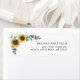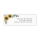 Skapa moderna solrosblommiga returadressetiketter med denna söta mall med vacker rustik blomsterbukett, geometrisk guldeffekt ram, med modern enkel typografi.