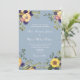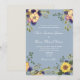 Elegant, landsbygd, rustik, botanisk, dammig blå bröllopsinbjudan med boho-vattenfärg blommor, gula solrosor och grönska.